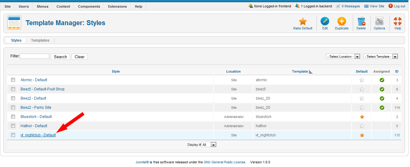 Here you will see a list of the templates installed on your Joomla website. For our example click on the template.